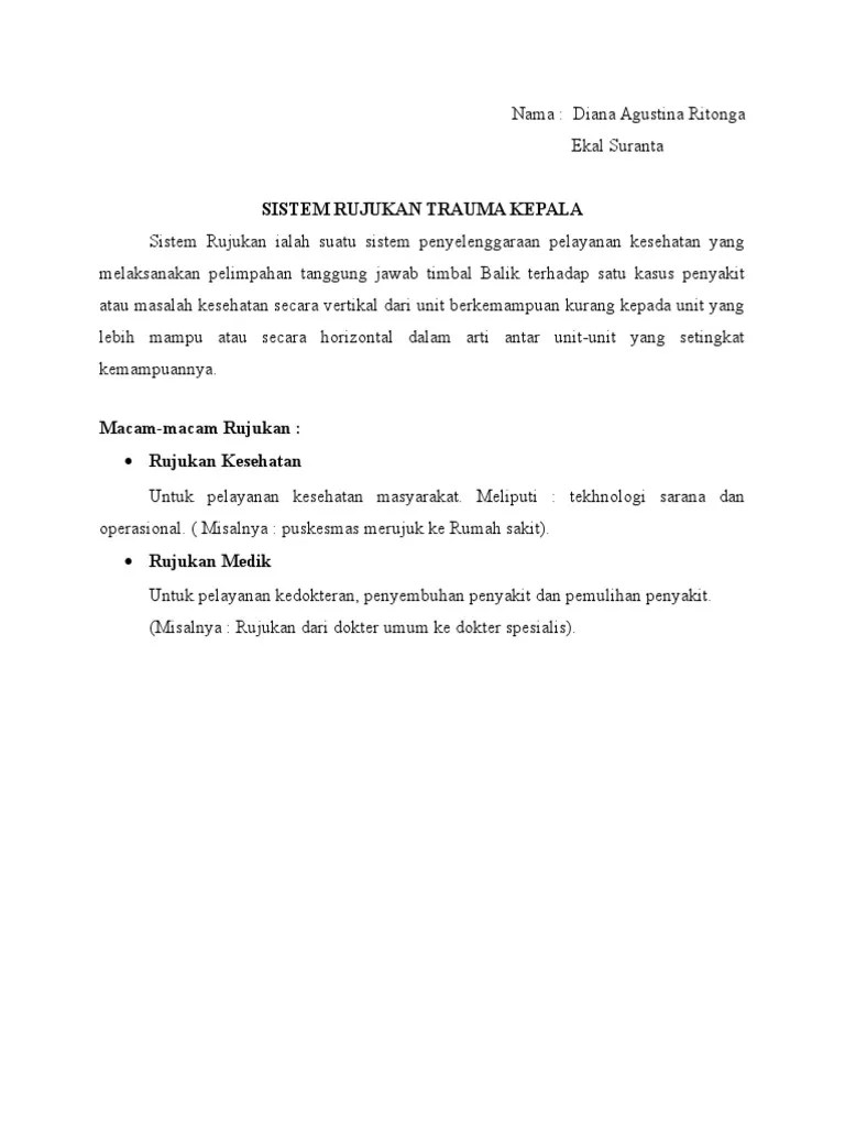 Pasien dirujuk adalah pasien yang atas pertimbangan dokter perawat bidan memerlukan pelayanan di rs baik untuk diagnostik penunjang atau terapi. Demikian beberapa contoh surat rujukan dokter yang baik dan benar. Terapi/obat yang telah diberikan : Nah pada saat itulah anda bisa meminta surat keterangan dari dokter ataupun. Pasien dapat meminta langsung surat rujukan ke petugas faskes. Puskesmas/ dokter sukatani kode : Cara mudah menulis surat rujukan pasien ke rumah sakit lain standar . Rs fatmawati mohon pemeriksaan dan pengobatan lebih lanjut terhadap penderita . Pelayanan rujukan spesialistik di rumah sakit . M iqbal rosada di rsu : Lembar rujuk balik apabila pasien dirujuk balik oleh rumah sakit · masa berlaku surat rujukan 3 bulan 1 kali kunjungan. Contoh surat rujukan puskesmas ke rumah sakit info terkait rumah . Surat keterangan dokter tentang penyakit.
